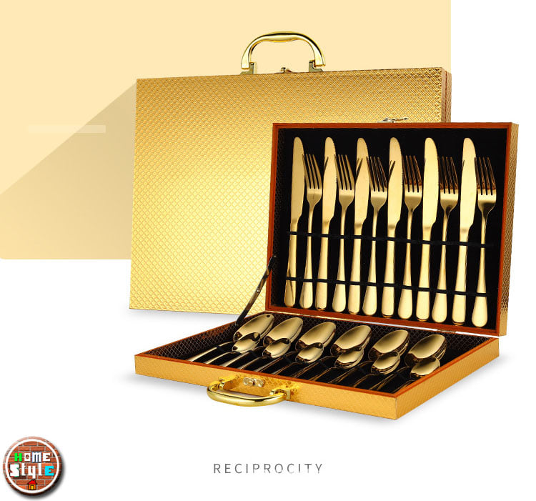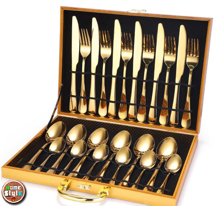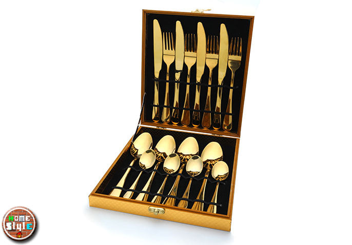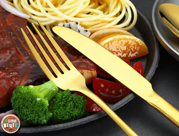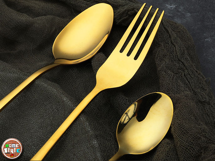 ชุดช้อน ส้อม มีด Luxuly ไฮๆ กับโต๊ะอาหาร ใครมา ใครไป มองแล้วหรูหรา สีทอง
